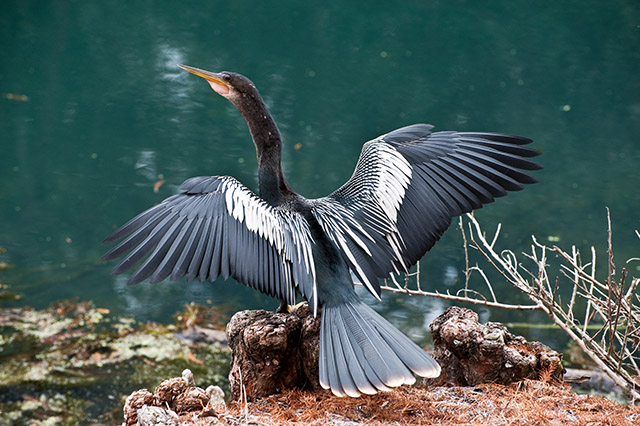 Unless you live in the heart of a city there's always wildlife outside your door. To do the best kind of wildlife photography you take a camera – a single lens reflex (SLR) is a good choice – and go out in the morning before your community is stirring. If you're going to shoot an anhinga drying his wings you need to become friendly with him so he won't fly away before you can get your shot. If you're going to shoot him on the wing, run the zoom lens out to its full extension and walk toward him softly. Figure out which direction the bird is likely to fly (usually into the wind) and be ready to shoot as he goes by. With birds you need the same kind of familiarity with your equipment you need for street photography.