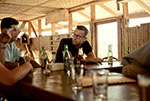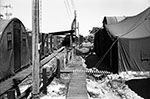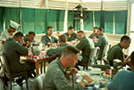 When fighter squadron echelons started to arrive the base went into an orgy of frantic construction. There was only one mess hall and it had to operate around the clock to feed everyone -- a far cry from the laid-back meal shown in the picture above.