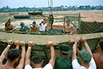 Once Rolling Thunder started, top secret frag orders would come in each night. The old headquarters tent wasn't secure enough for the route plotting that had to be done, so a new, wholly enclosed ops office quickly was thrown up. You can see it on the right in the "Lion During Rolling Thunder" picture above.