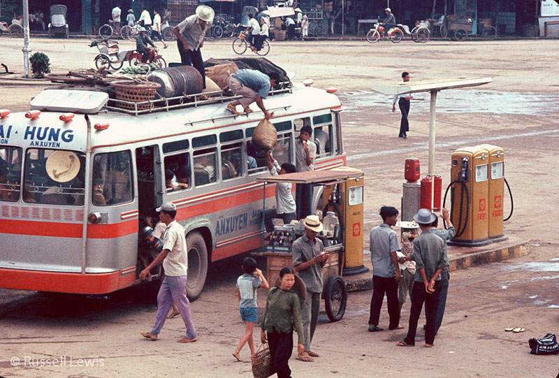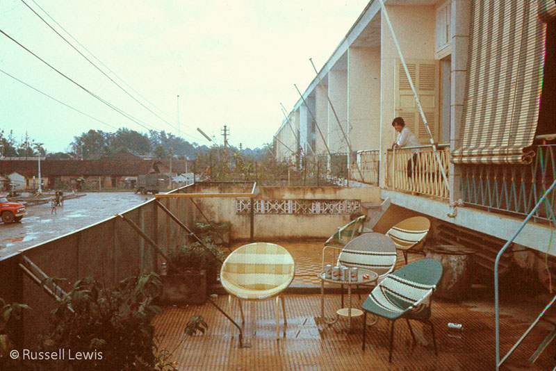 In Can Tho we lived "on the economy" in commercial buildings at Ben Xe Mai. Officers and NCOs lived in two of the vertical "apartments" just to the right of the restaurant in the Ben Xe Mai picture. More NCOs and airmen lived in similar structures across the wide street to the right. We set up an intercom that let us all communicate quickly if necessary. In the morning, when you got ready to go out to Paddy, you'd check your vehicle -- engine compartment and underneath to make sure no one had planted a bomb during the night. There were "white mice" patrolling through the night, but you never could be sure that all was well.